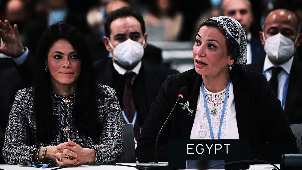 Members of the Egypt delegation accept the next COP (Conference of the Parties) for COP27 which will be held at Sharm El Sheikh, Egypt, during the COP26 Closing Plenary Part 1 on November 11, 2021 in Glasgow, Scotland. (Photo by Jeff J Mitchell via Getty images)
